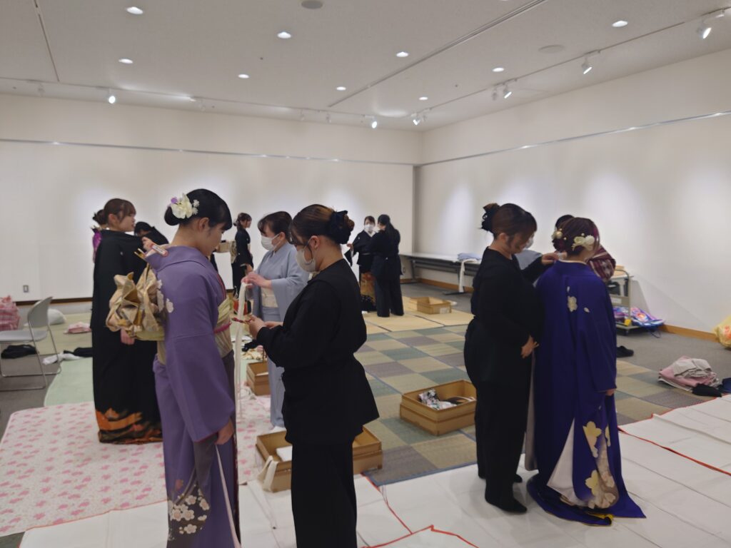 学生の皆さんの日頃の練習の成果を存分に発揮し素晴らしい着付けの技術をご披露いただきました。