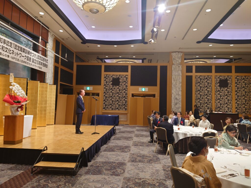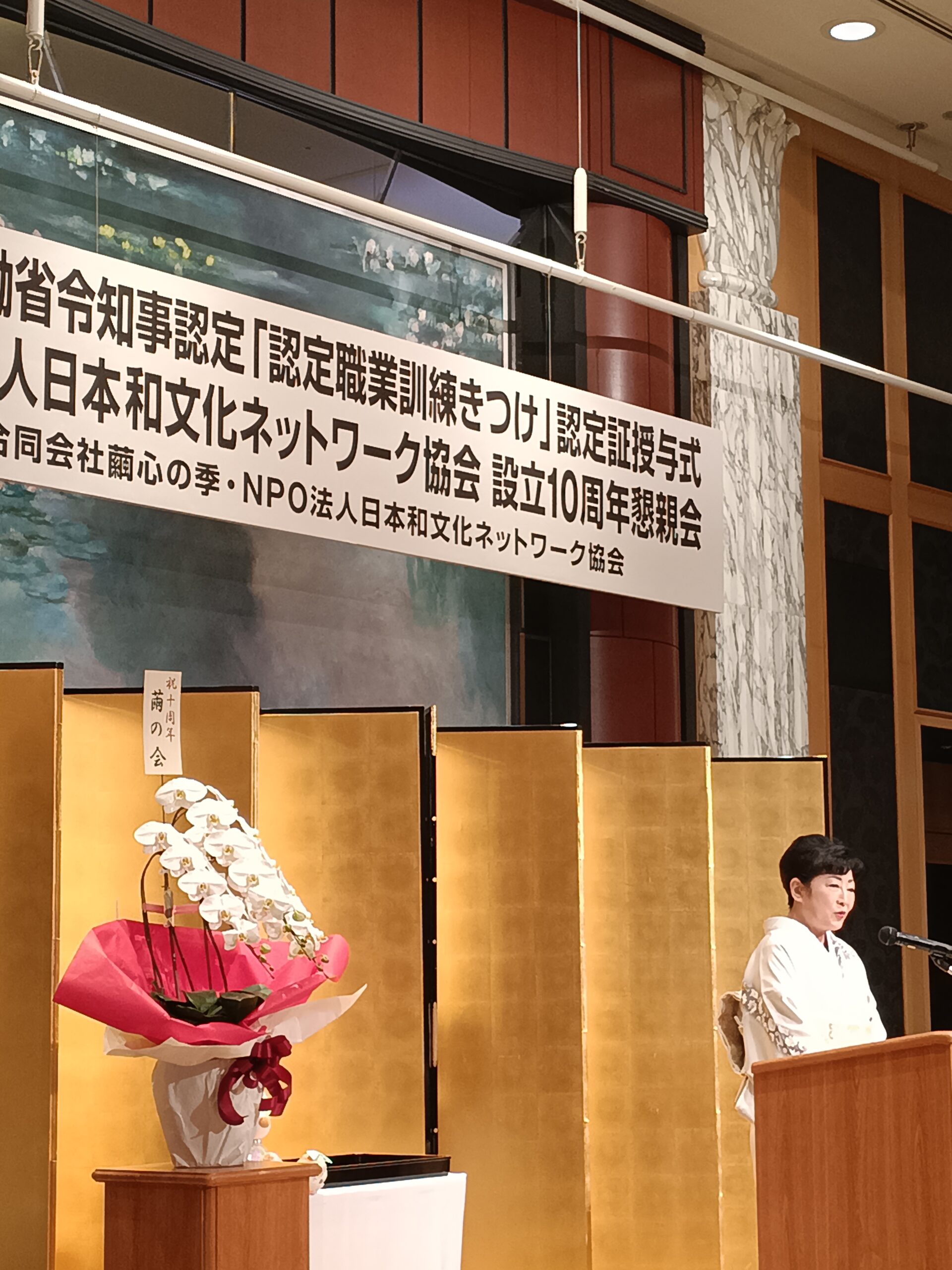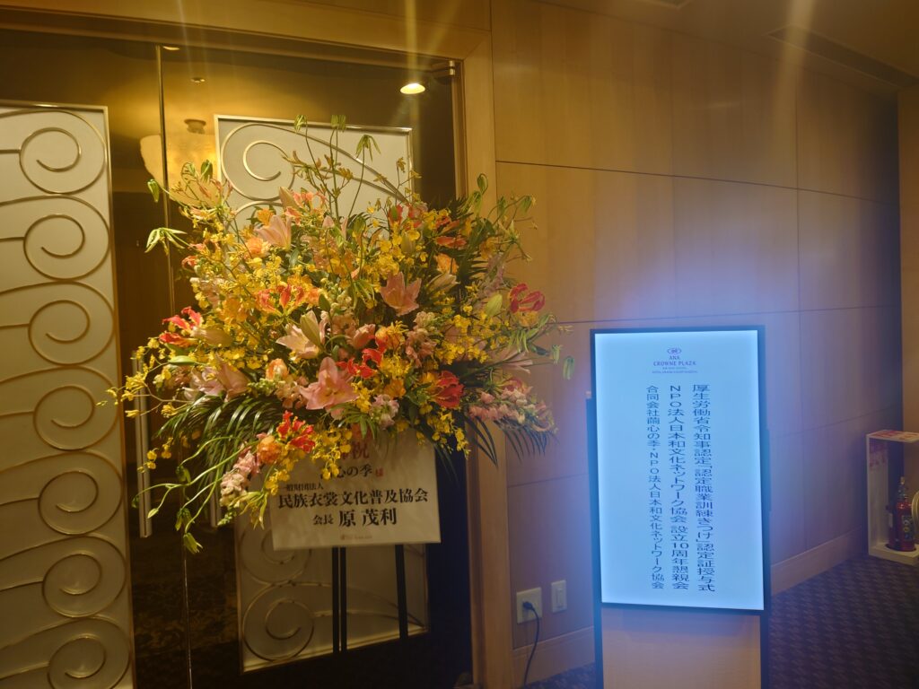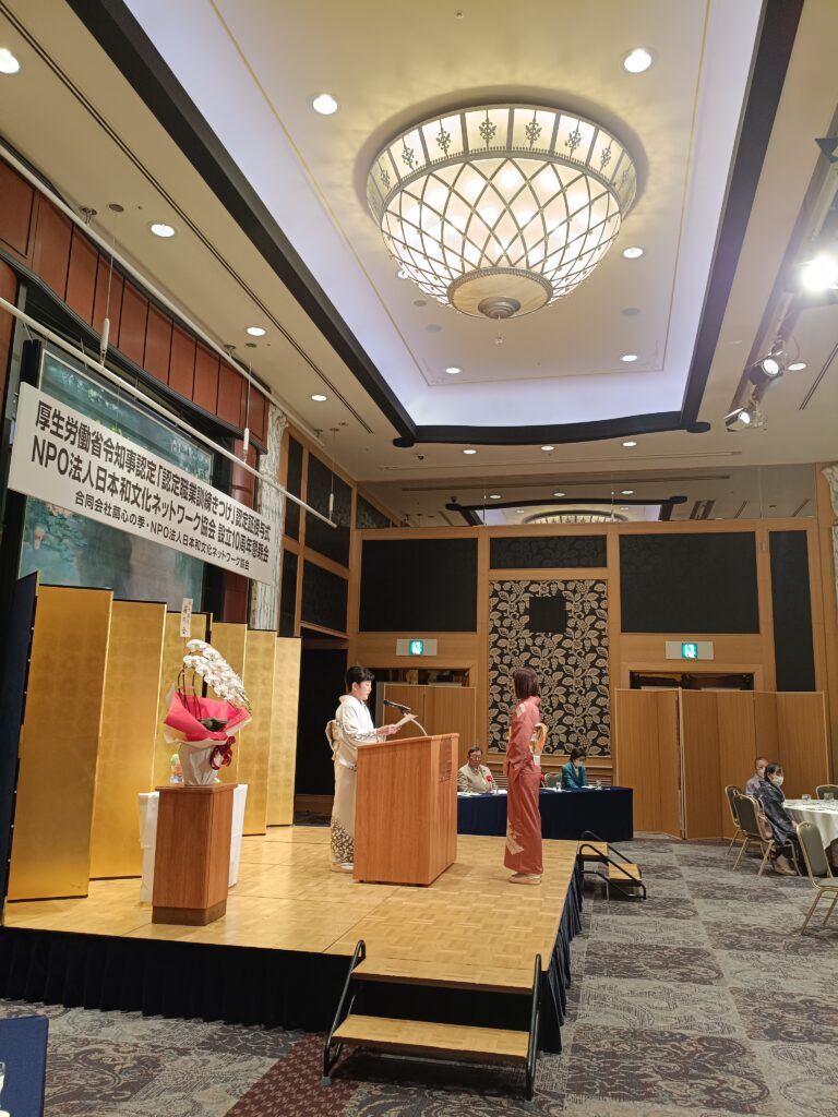 2025年11月24日厚生労働省令知事認定職業訓練着付け認定証授与式・日本和文化ネットワーク協会創立10周年懇親会が執り行われました。