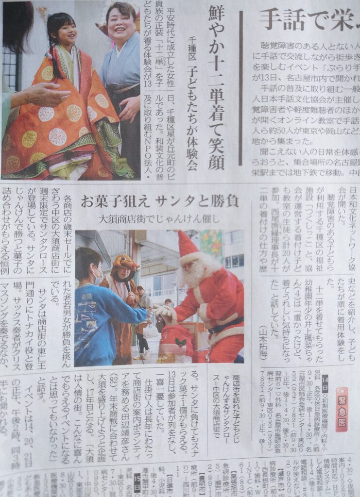 2025年令和7年12月14日の中日新聞市民版(地域によっては「なごや東版」などの場合があります)にNPO法人日本和文化ネットワーク協会の記事が掲載されました。